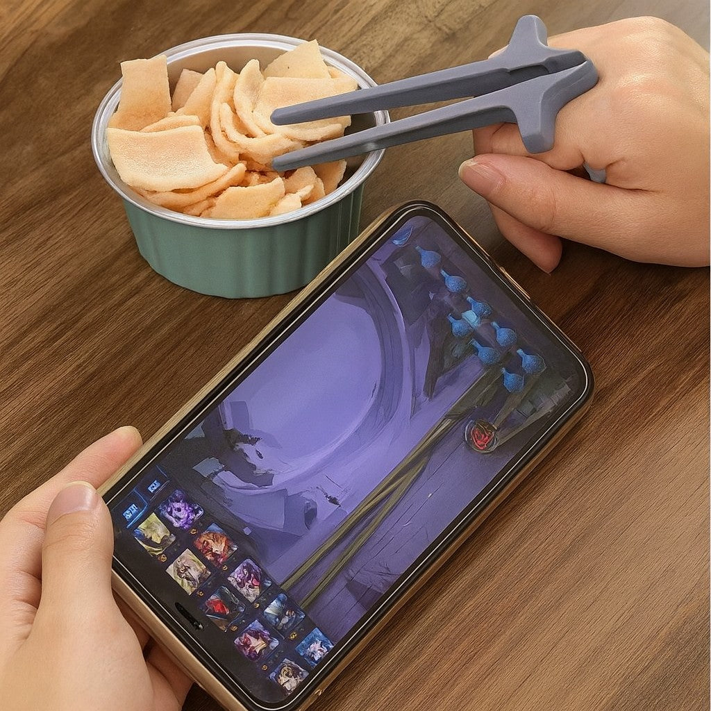 Fettige & klebrige Finger am Controller, Lenkrad oder auf der Tastatur | Mit FingerFree greifst du deine Snacks hygienisch – kein Kontakt mit der Haut nötig. |